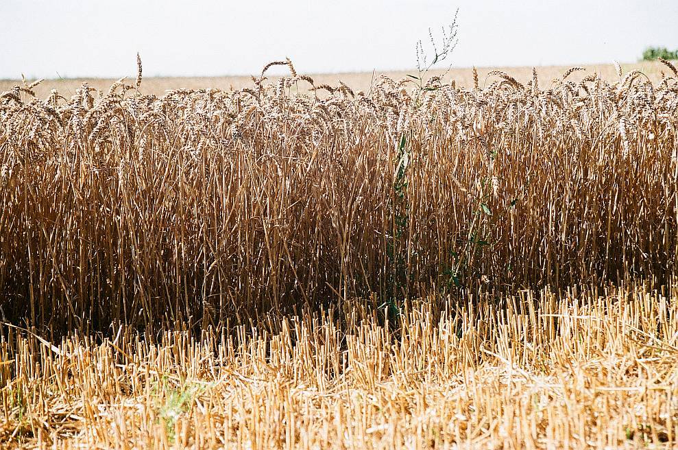 Der Weizen ist reif, er steht goldgelb da und will gedroschen werden.